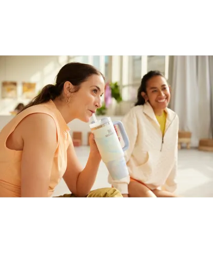 Start fresh in the new year. In pastels that pop, the Quencher H2.0 FlowState Tumbler is here to keep you hydrated. From picnics to carpooling, or nestled next to your yoga mat, double-wall vacuum insulation chills ice water all day long, and the slim base fits right in your cupholder. The advanced FlowState lid rotates through three positions: a straw opening to hold the reusable straw in place, a drink opening, and a full-cover top that resists splashes. Make hydration your feel good essential.